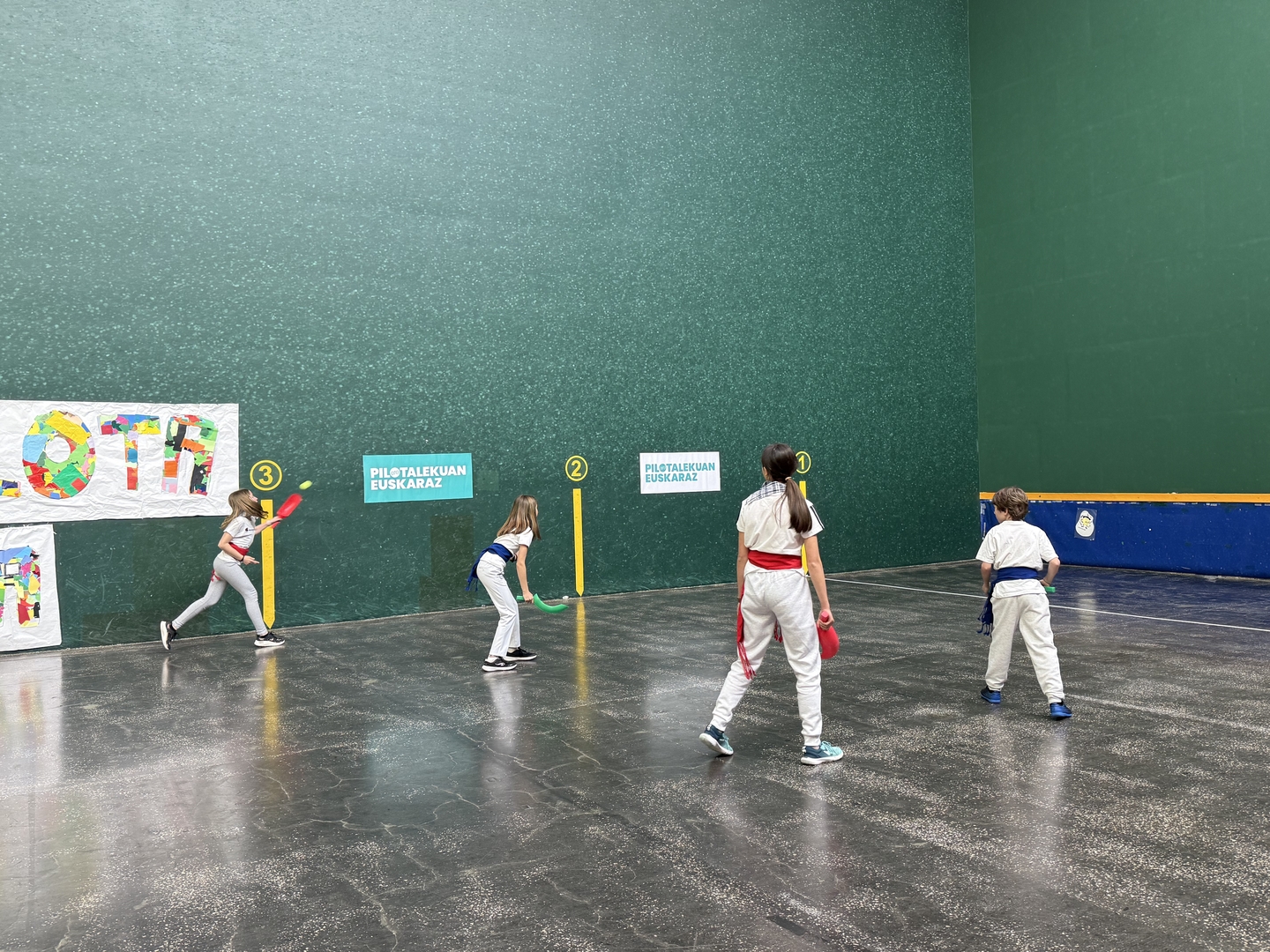 El festival de pelota vasca se ha convertido en una tradición antes de las vacaciones de primavera. El alumnado de 3º, 4º, 5º y 6º de Primaria, tras practicar diferentes modalidades de la pelota vasca, las puso en práctica el 1 de abril.